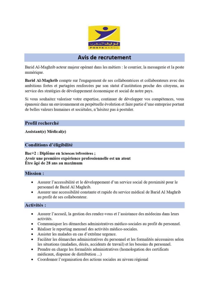 بريد المغرب: مباريات توظيف 13 منصب. آخر أجل 22 يوليوز 2025 Concours de Recrutement Poste Maroc 2025: Poste Maroc Barid Al Maghrib organise un concours…